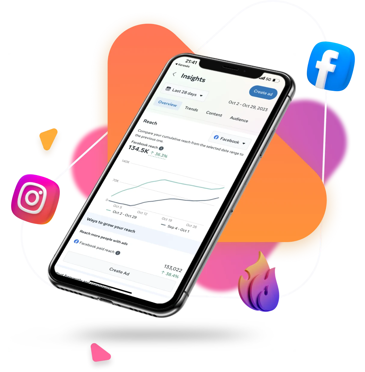 A hirdetésed azonnal megjelenik Facebookon és Instagramon, így rögtön láthatóvá válsz a célközönséged számára.